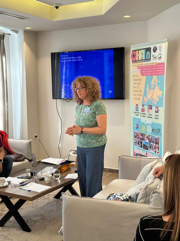 From May 5th to 9th, 2025, our Cultural Heritage Art and Innovation Consortium (CHAIN) hosted a job shadowing and invited expert week that brought together teachers from across Europe. We welcomed colleagues from CEIP Victor Mendoza (Spain), Katarina Södra Skola (Sweden), and I.C. Tropea-Ricadi Don Francesco Mottola (Italy), as well as Lucia Roncarati from I.C.S. Adele Zara in Venice, Italy, who led a dynamic workshop on international cooperation strategies within the Erasmus+ framework.